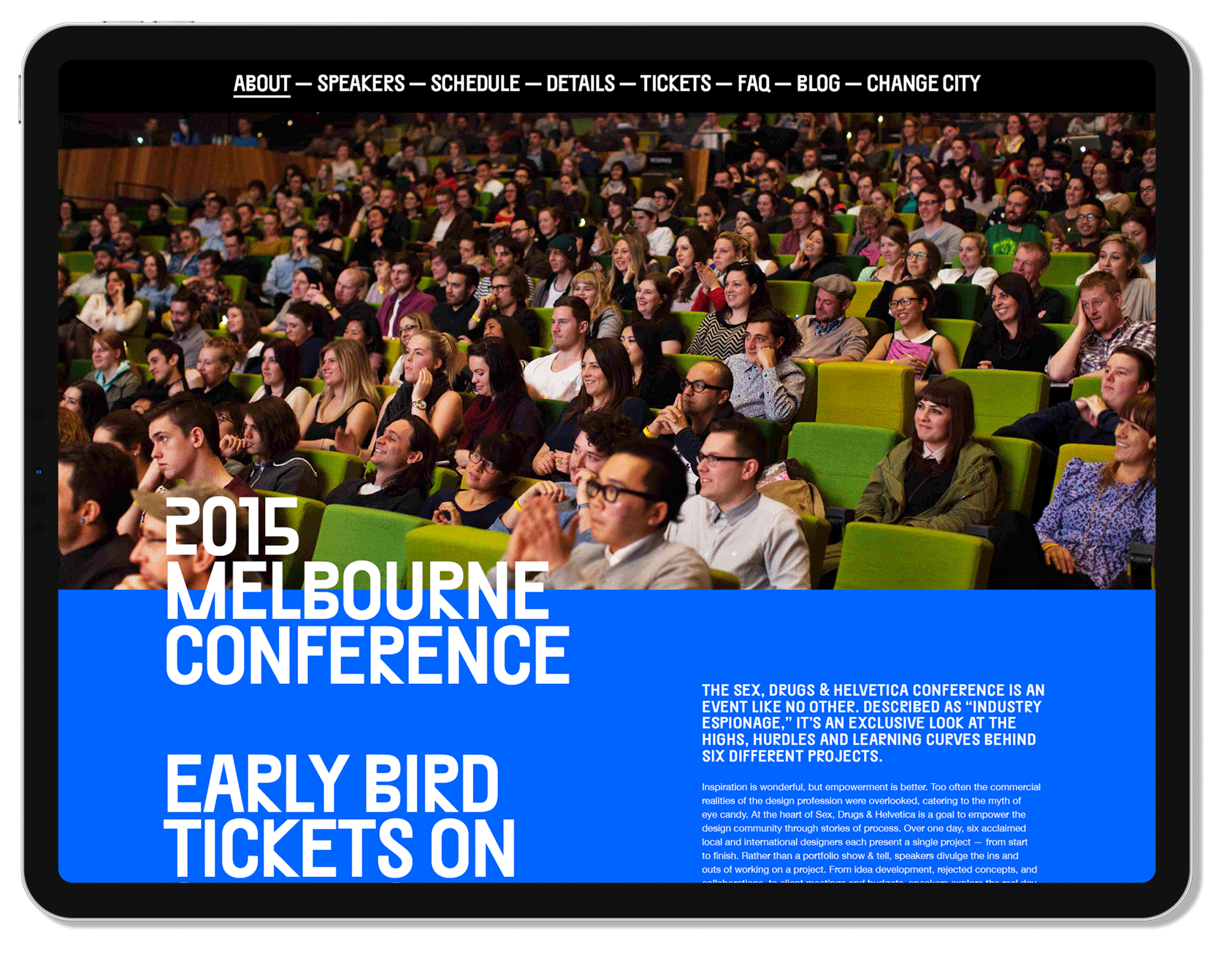 With a single seed investment of AU$ 25,000, Sex, Drugs & Helvetica developed a conference framework and brand equity strategy to fuel eight conferences in Melbourne and Brisbane over five years.